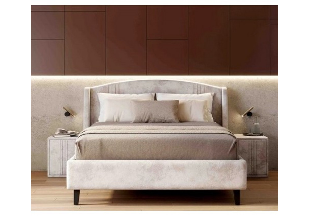 | Материал | массив березы (опоры кровати); велюр (обивка кровати); металл + ламели (ортопедическое основание). |